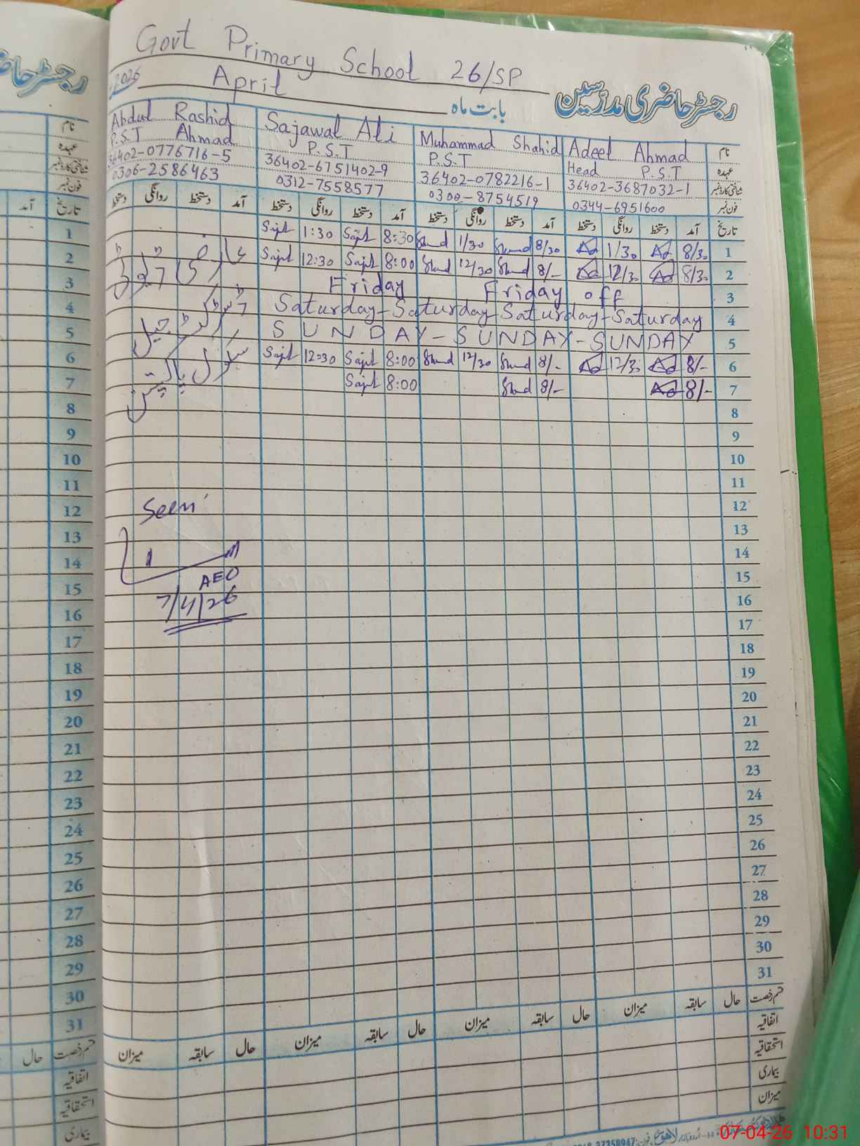| EMIS Code: 39210084 | Name of School: GPS 26/SP PAKPATTAN | |||