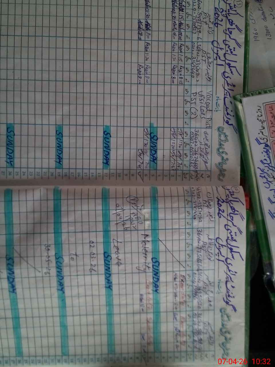 | Leave | Duty | Absent | Maternity | Medical | Ex- Pak |