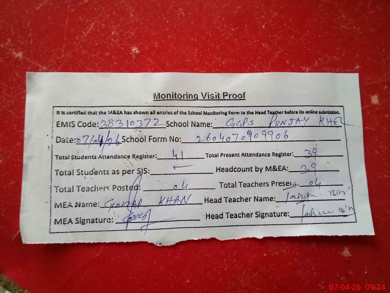 | EMIS Code: 38310372 | Name of School: GGPS PUNJAY KHEL | |||