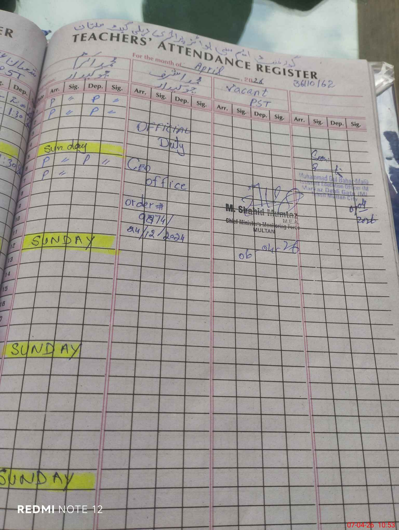 | EMIS Code: 36110162 | Name of School: GPS MC DEHLI GATE MULTAN | |||