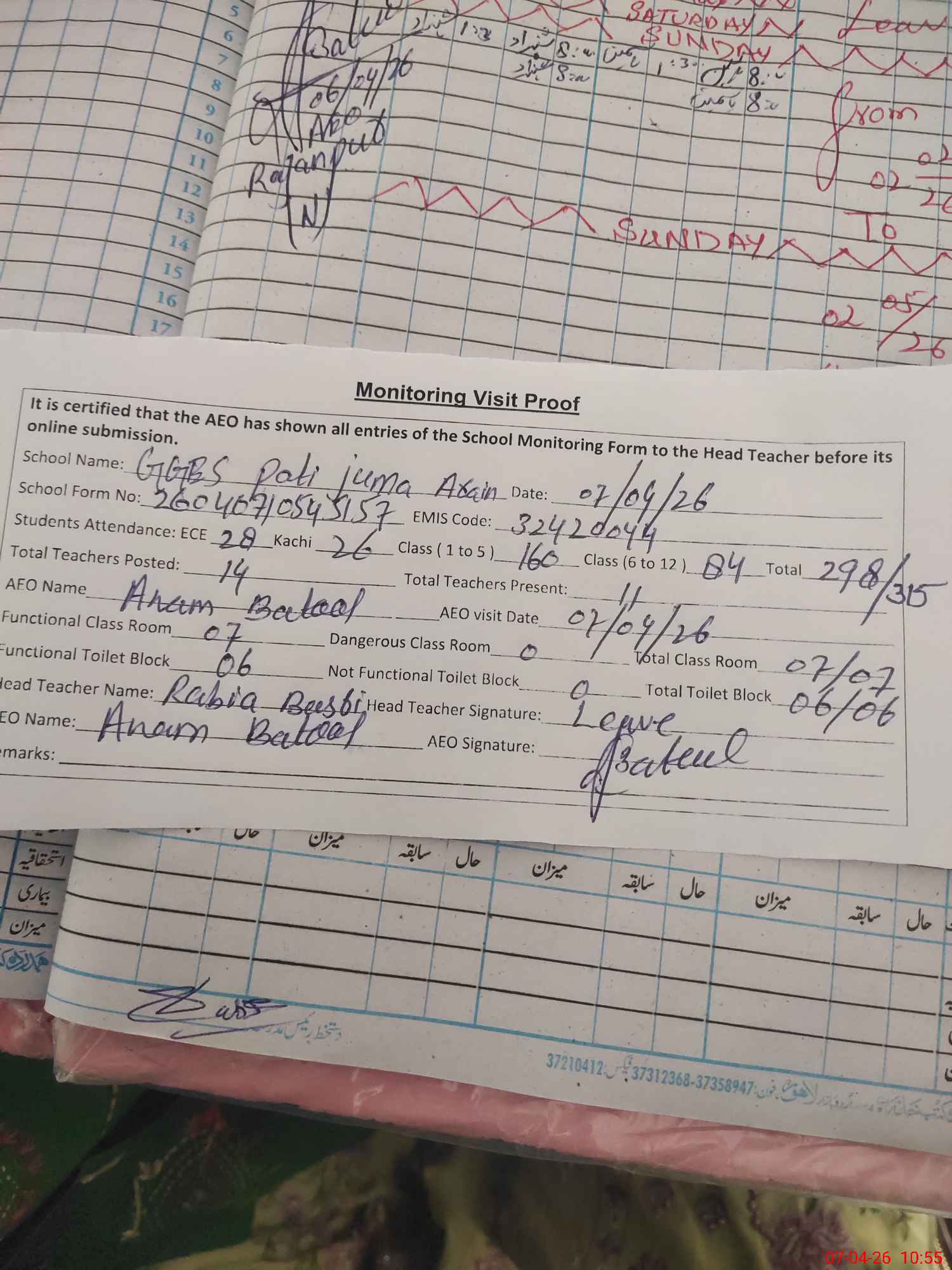 | EMIS Code: 32420044 | Name of School: GGES PATI JUMMA ARAIN | |||