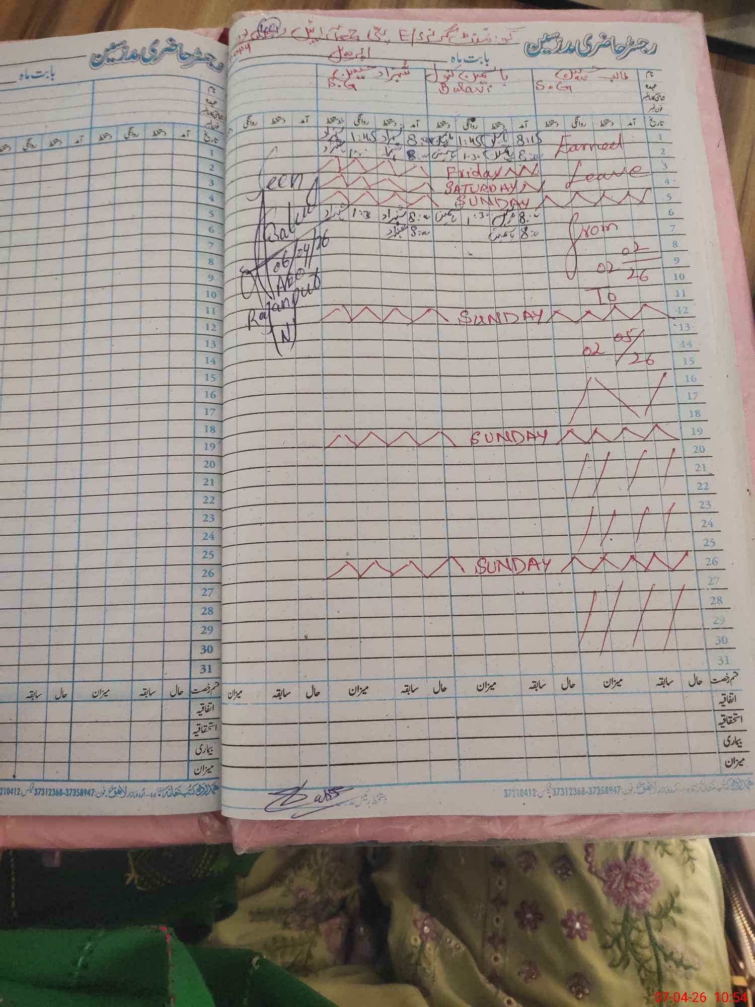 | CNIC | Full Name | Designation | R/C | Absence During Last Calender Month |