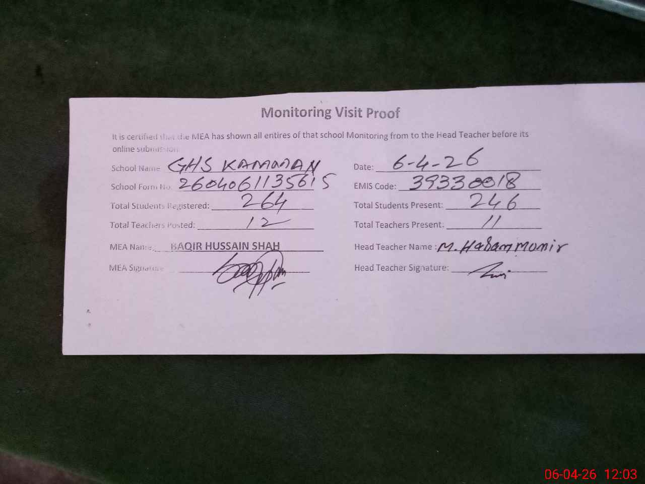 | EMIS Code: 39330018 | Name of School: GHS KAMMAN | |||