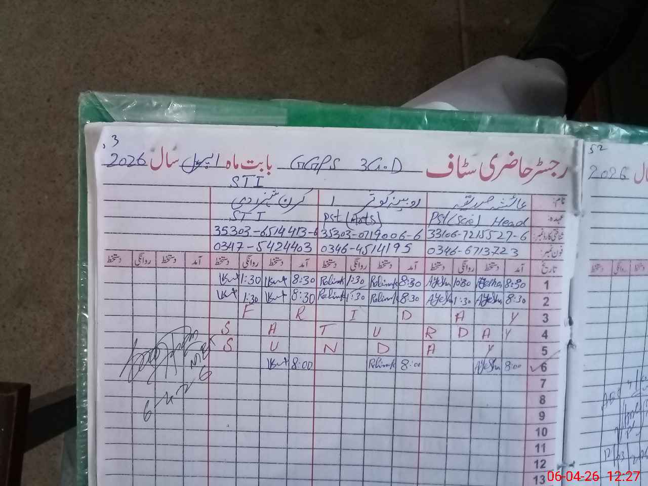 | Name: AY**** SA**** Designation: (School Headmaster's/Headmistress's) PST Phone/Cell Number: 03**** |