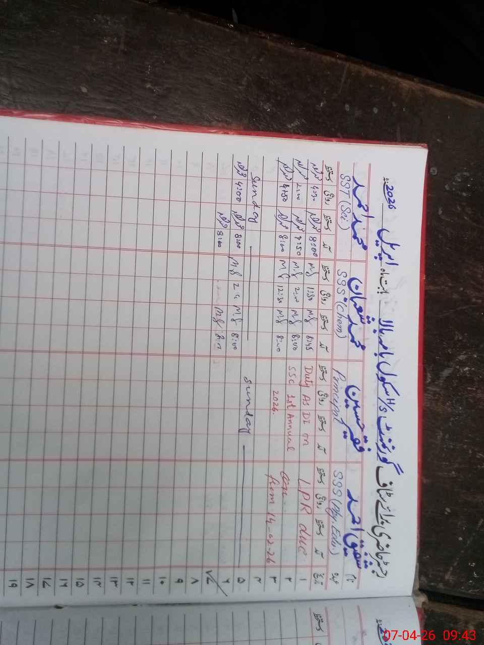 | 35**** | Fa**** Hu**** | SSS Urdu | Regular | 0 | 0 | 0 | 0 | 0 | 0 | 0 | 0 | 0 | Exam Duty |