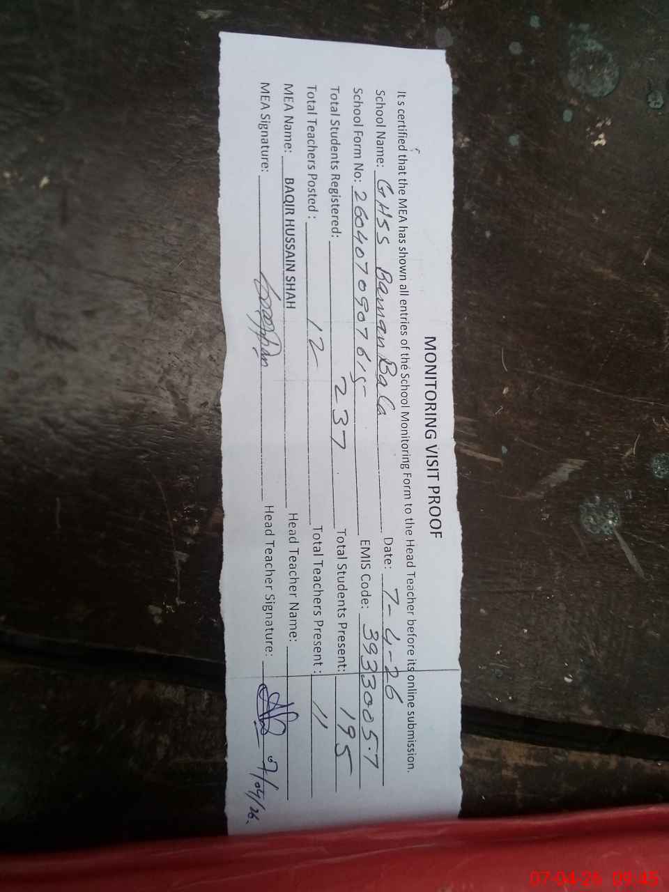 | Certified that this School was Inspected by the Undersigned MEA/DMO Today and the Information Stated Above is as Per Record. | |||||