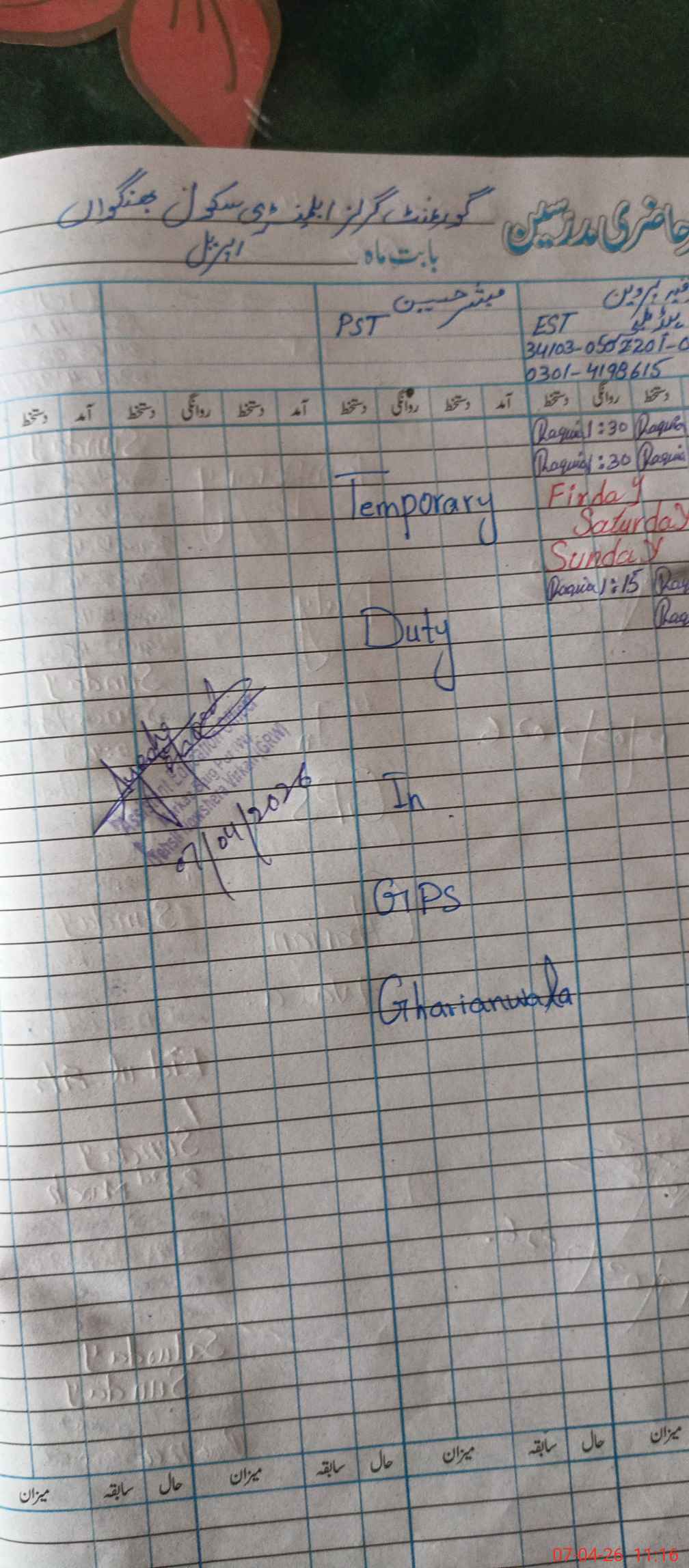 | Name: Ra**** Pe**** Designation: (School Headmaster's/Headmistress's) EST Phone/Cell Number: 03**** |