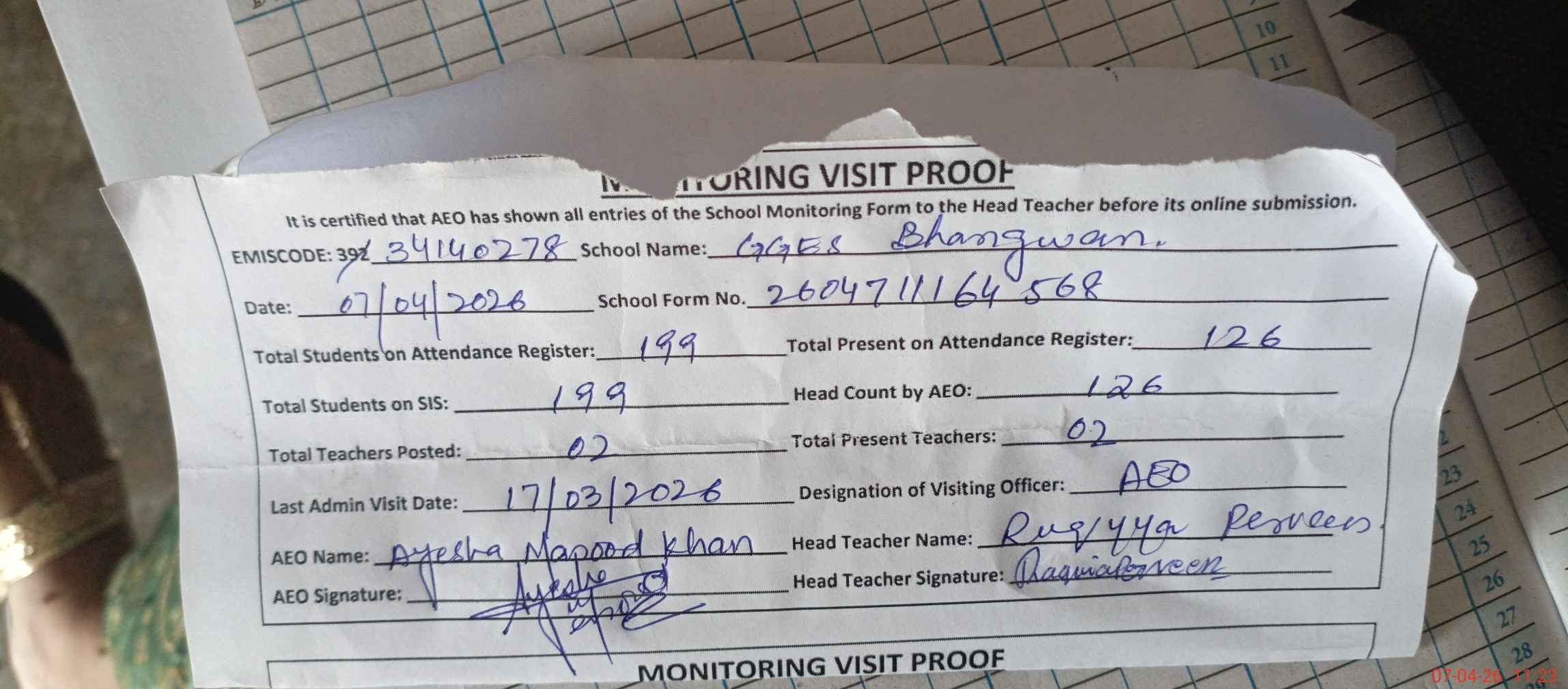| EMIS Code: 34140278 | Name of School: GGES BHANGWAN | |||