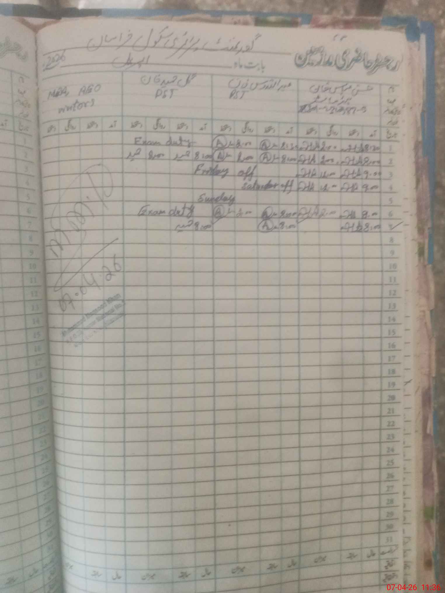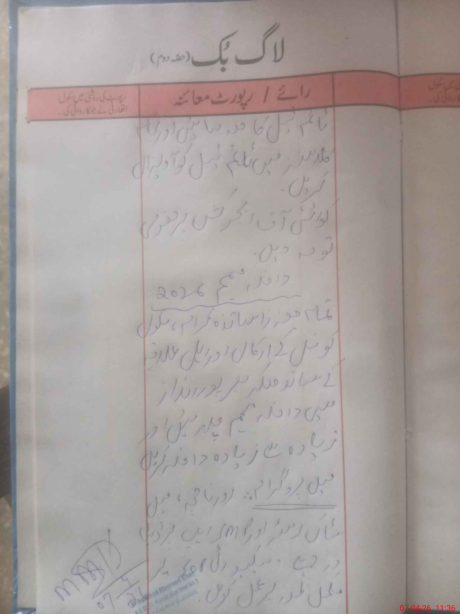 | Monitoring Date: 07-04-2026 | Start Time: 07-04-2026 11:03 AM | End Time: 07-04-2026 11:37 AM | Name of MEA: Mu**** Ma**** Kh**** | |
