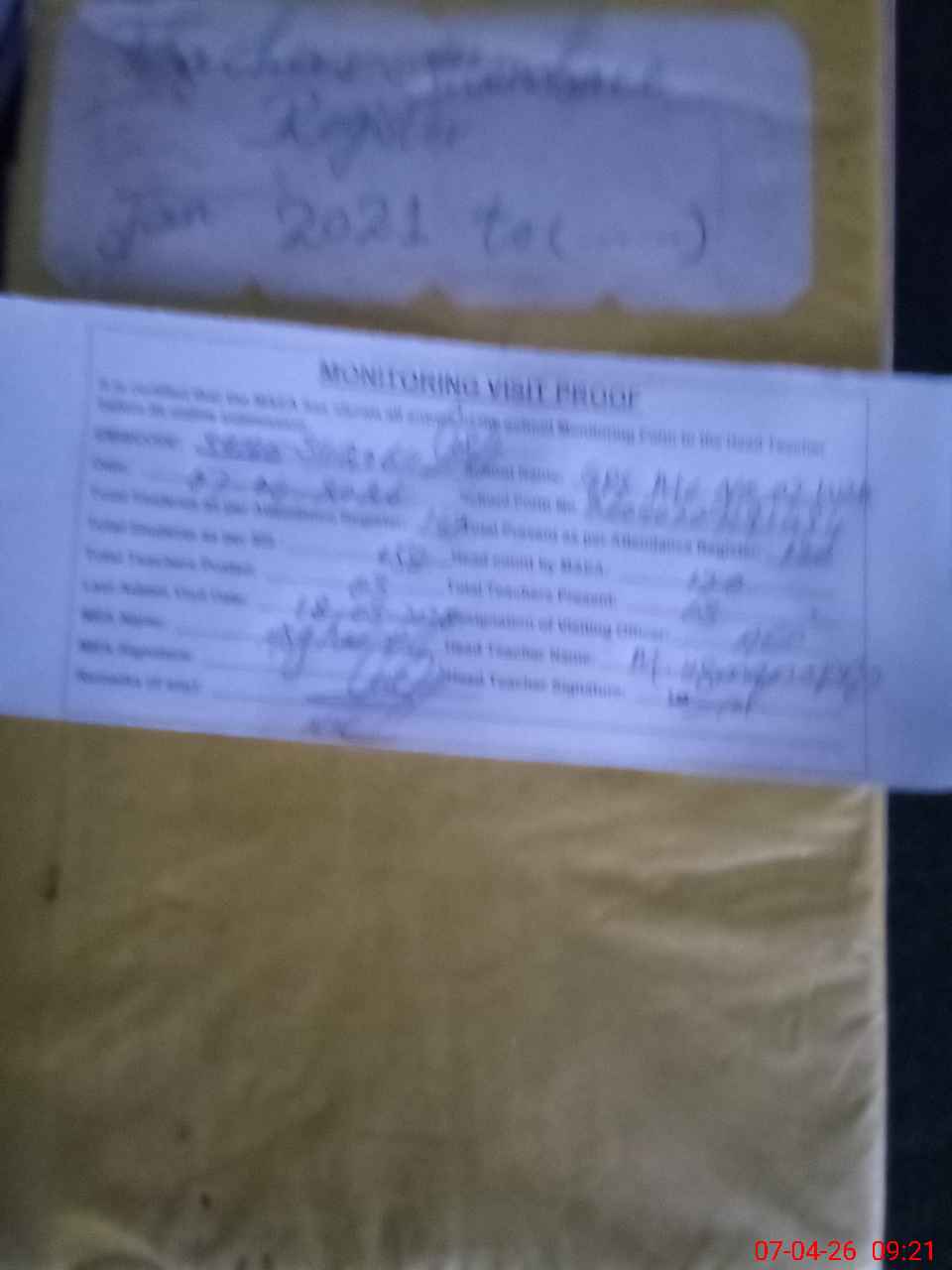 | Attendance Register | Head Teacher | MEA with School | Visit Proof |
