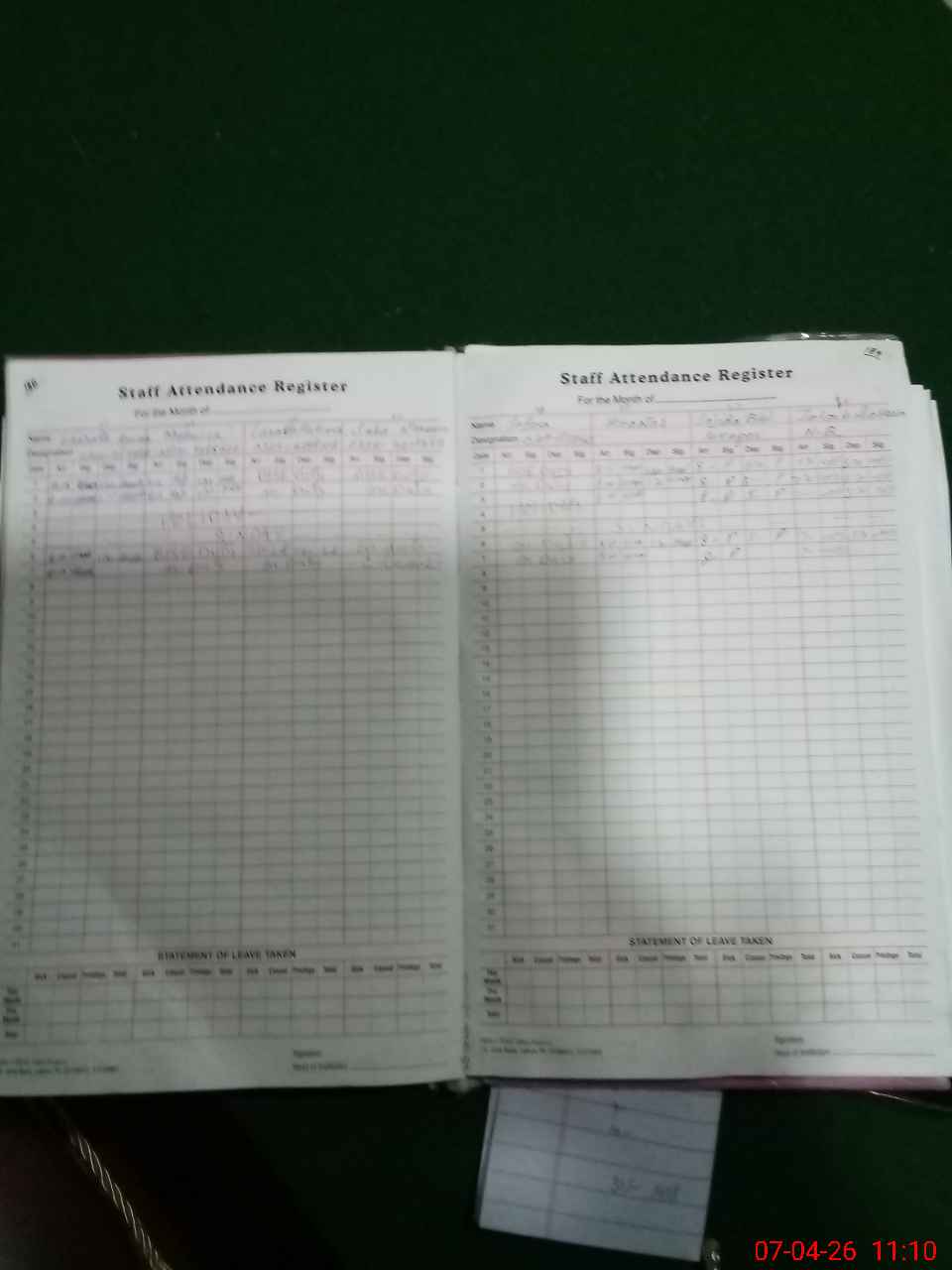 | CNIC | Full Name | Designation | R/C | Absence During Last Calender Month |