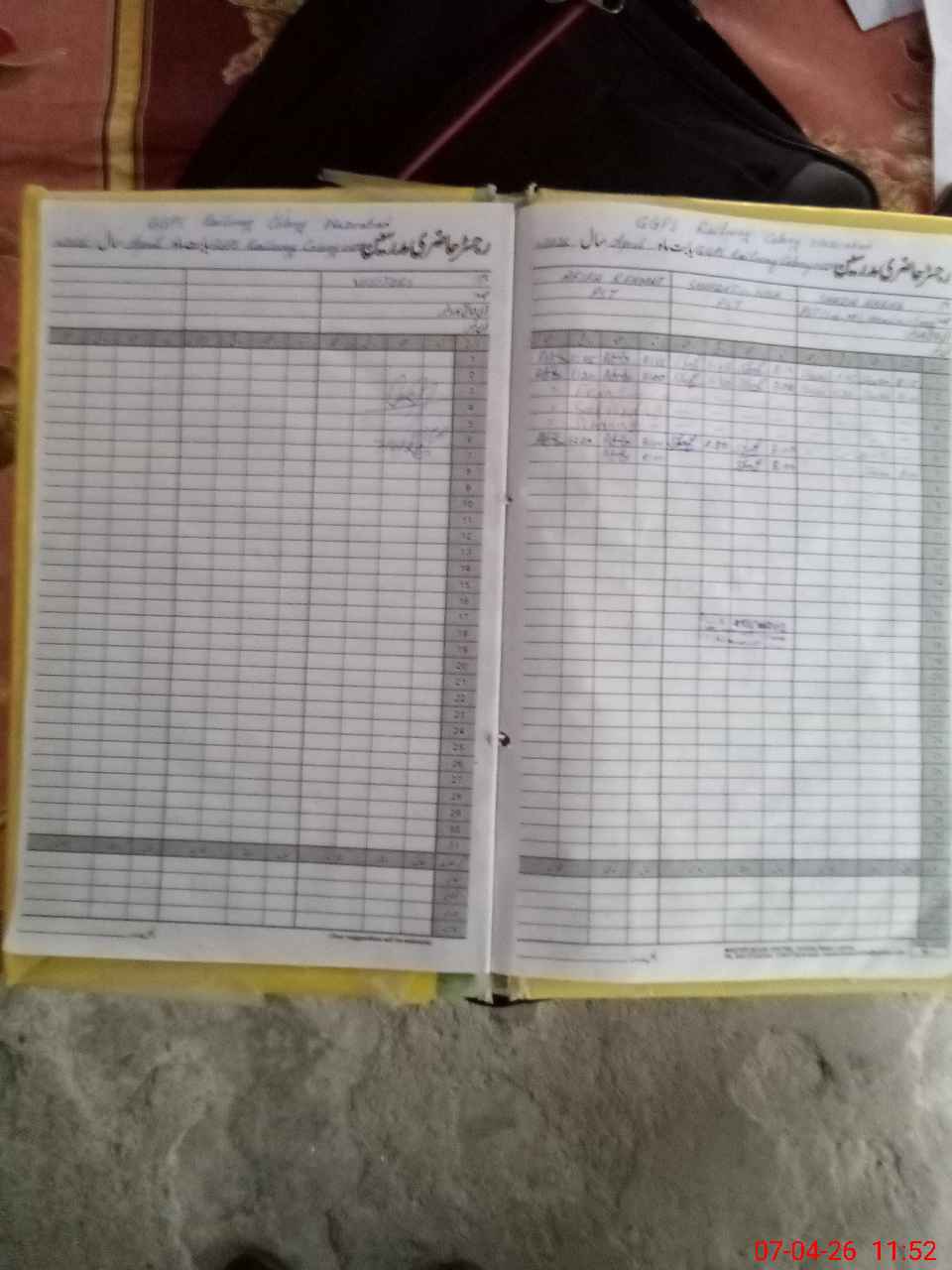 | CNIC | Full Name | Designation | R/C | Absence During Last Calender Month |