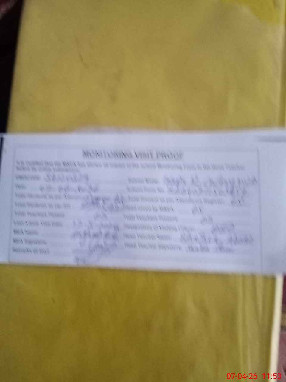 | Attendance Register | Head Teacher | MEA with School | Visit Proof |