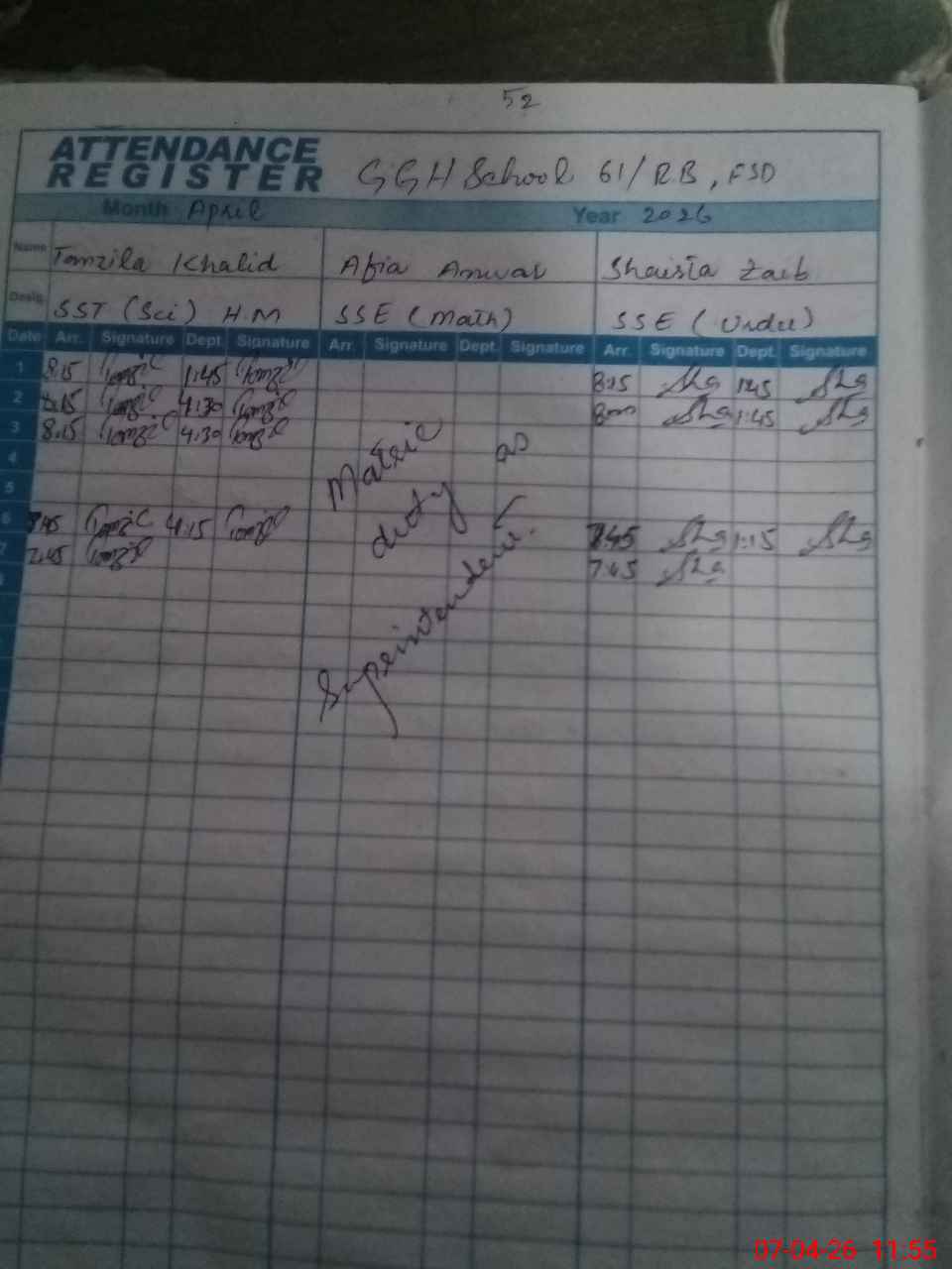 | EMIS Code: 33120673 | Name of School: GGHS CHAK NO 61 RB | |||