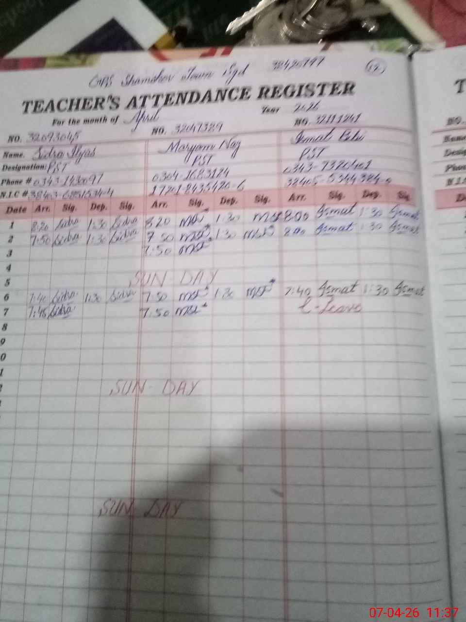 | Name: Um**** Hu**** Designation: (School Headmaster's/Headmistress's) PST Phone/Cell Number: 03**** |