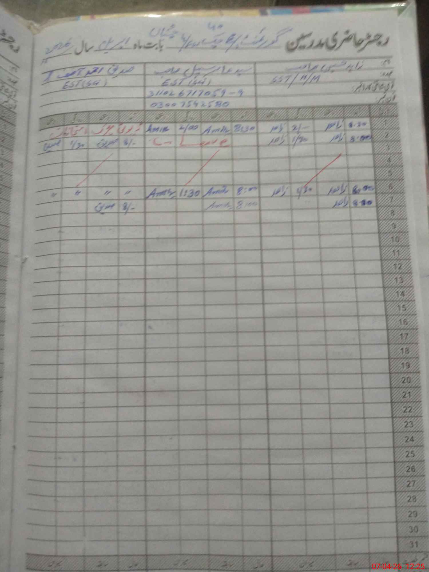 | CNIC | Full Name | Designation | R/C | Absence During Last Calender Month |