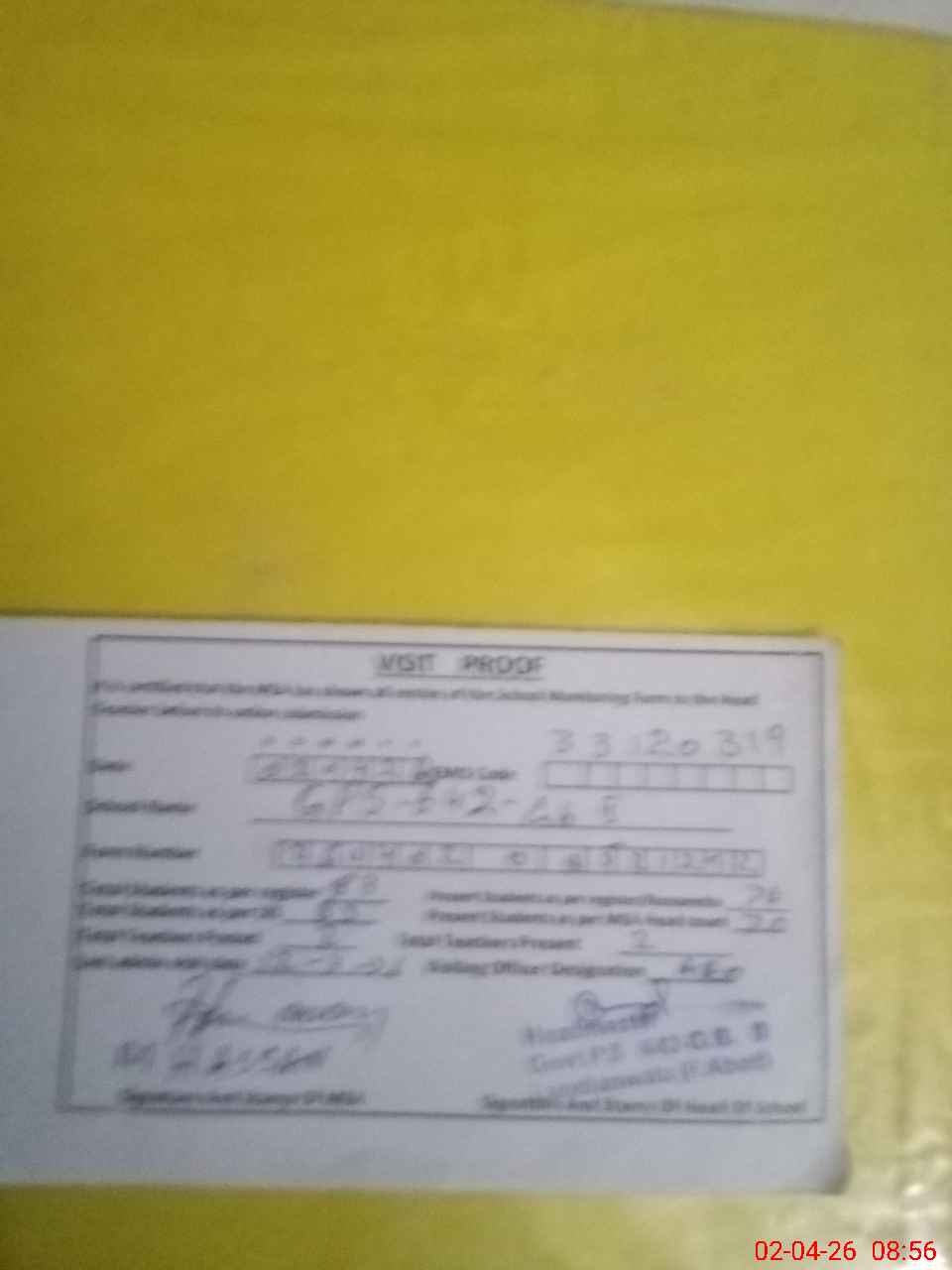 | Attendance Register | Head Teacher | MEA with School | Visit Proof |