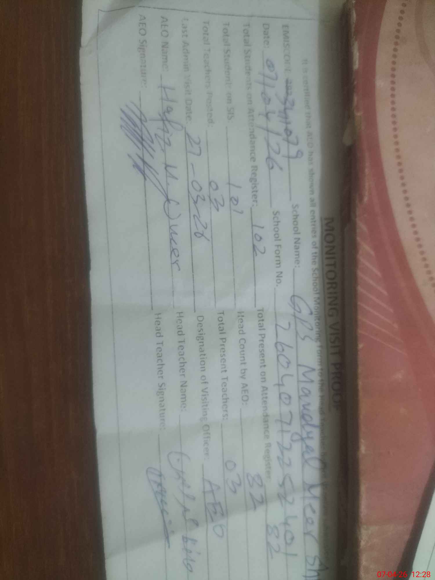 | EMIS Code: 34110279 | Name of School: GPS MANDIALA MIR SHIKARAN | |||