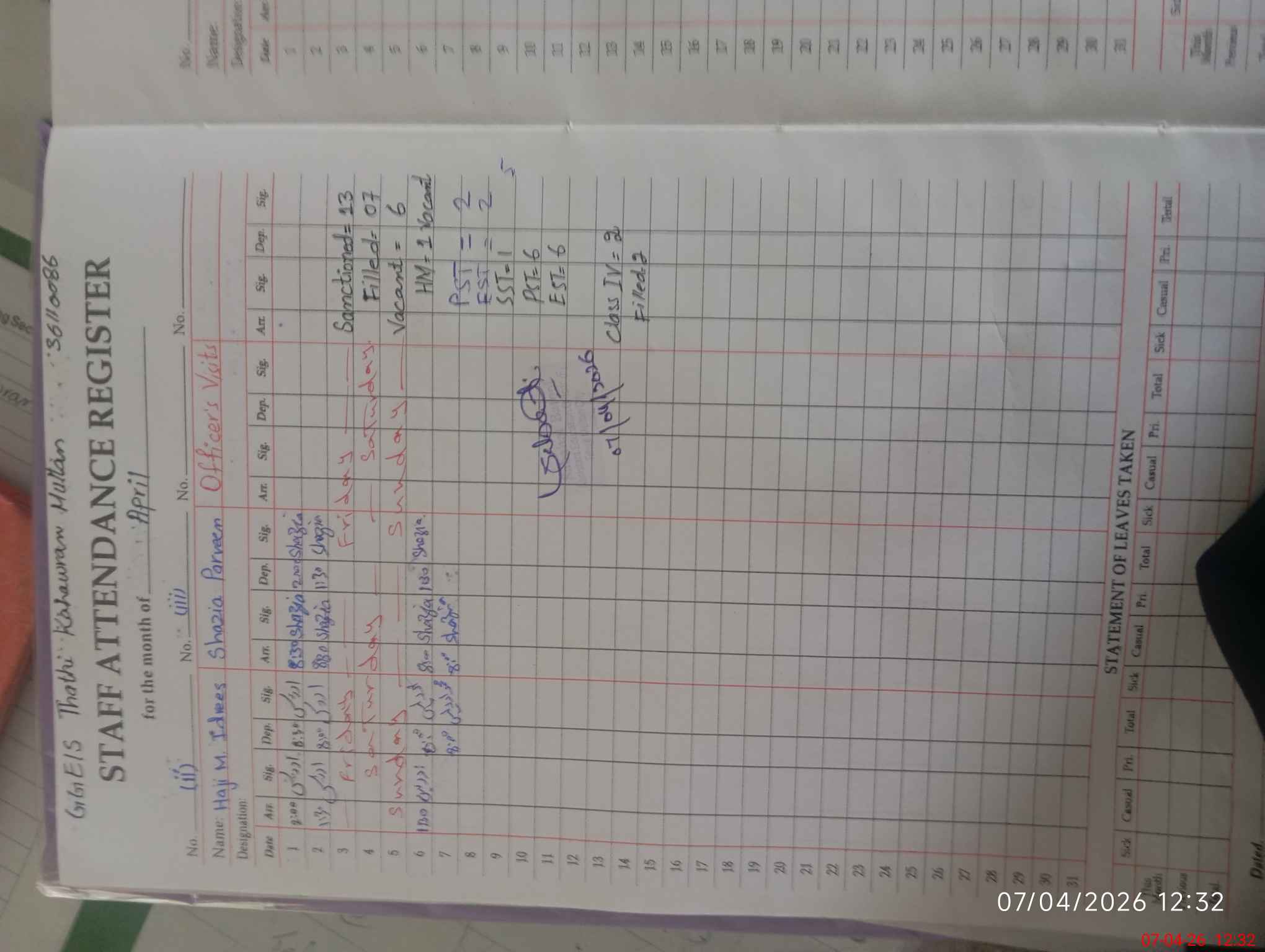 | Attendance Register | Head Teacher | MEA with School | Visit Proof |
