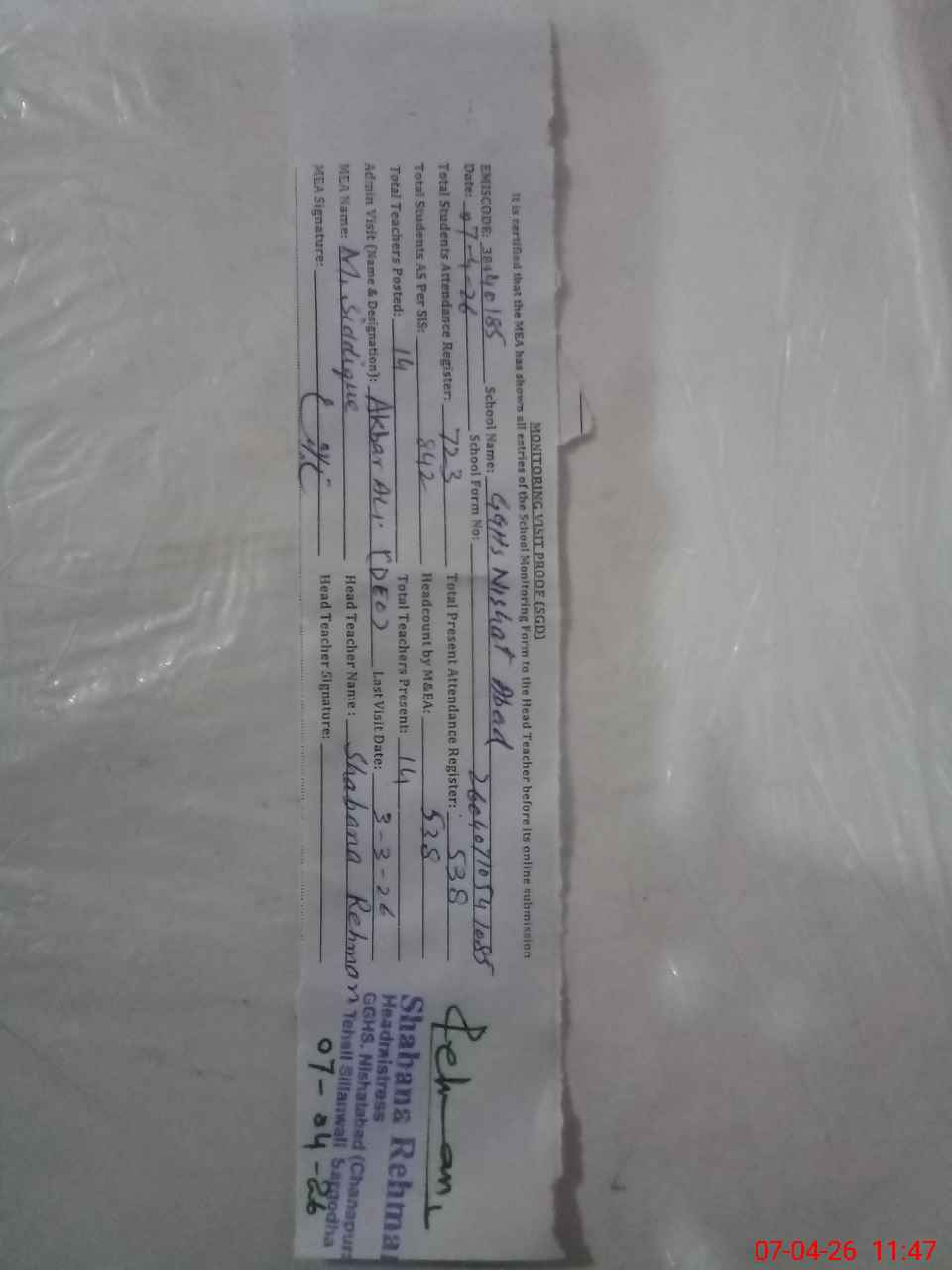 | EMIS Code: 38440185 | Name of School: GGHS NISHATABAD SILLANWALI. | |||