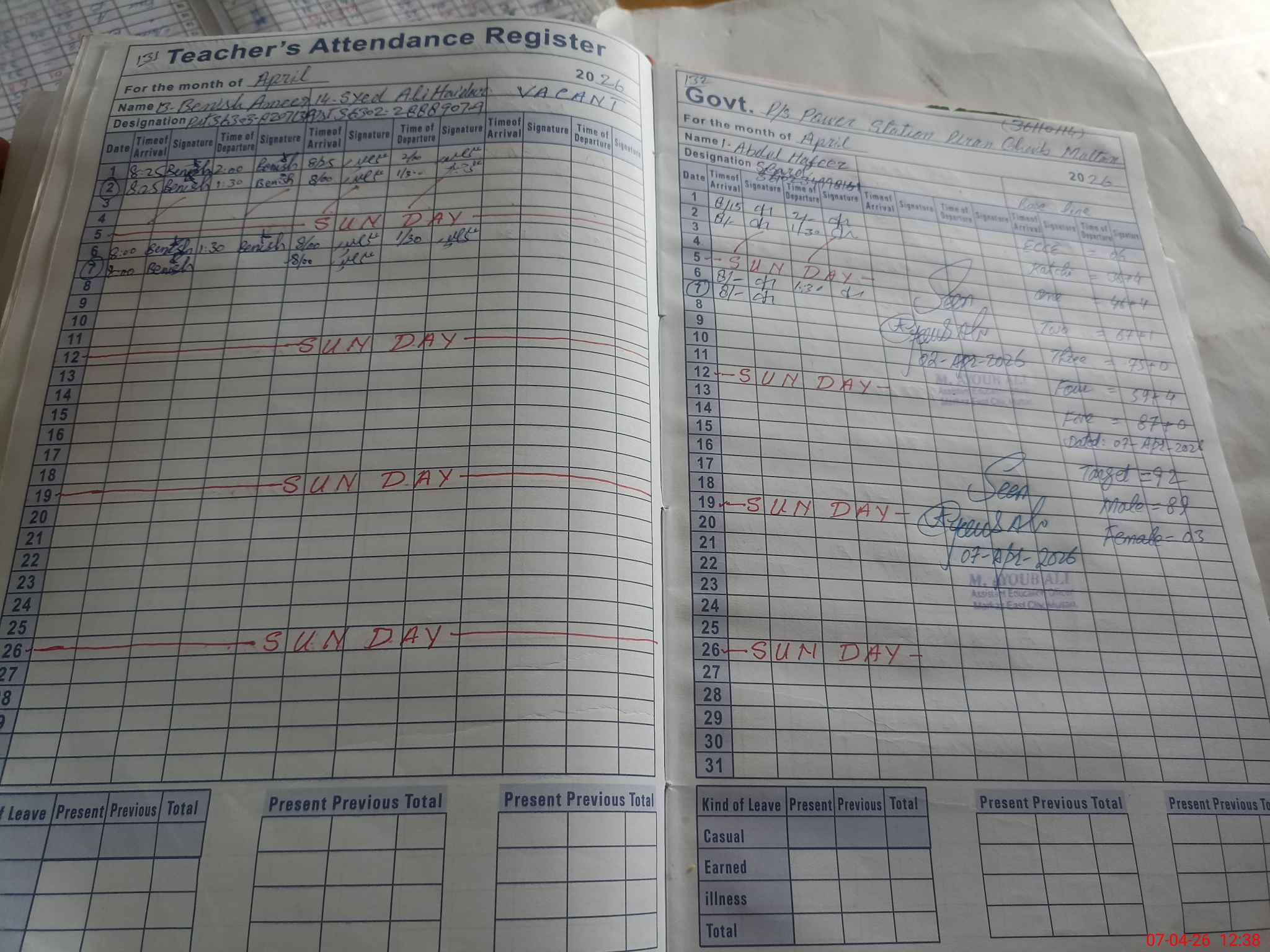 | Attendance Register | Head Teacher | MEA with School | Visit Proof |