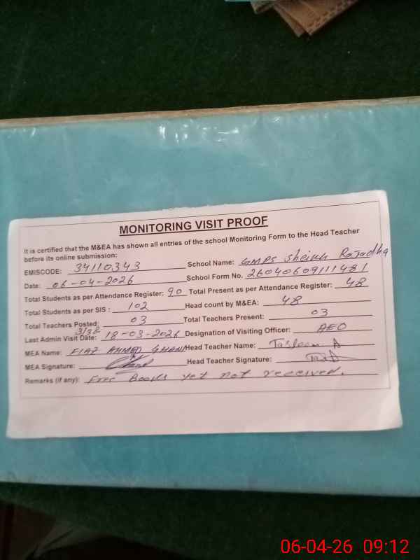 | EMIS Code: 34110343 | Name of School: GMPS SHEIKH RAJADHA | |||