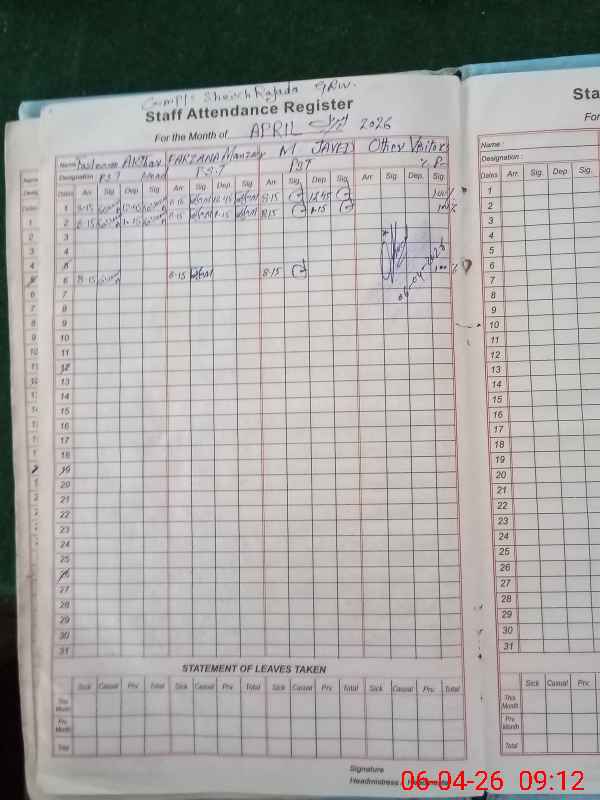 | Remarks (Use Separate Page if Required): Students Attendance Registers required updation Free Books yet not received Data as per provided by School Staff and found during physical visit | |||||
