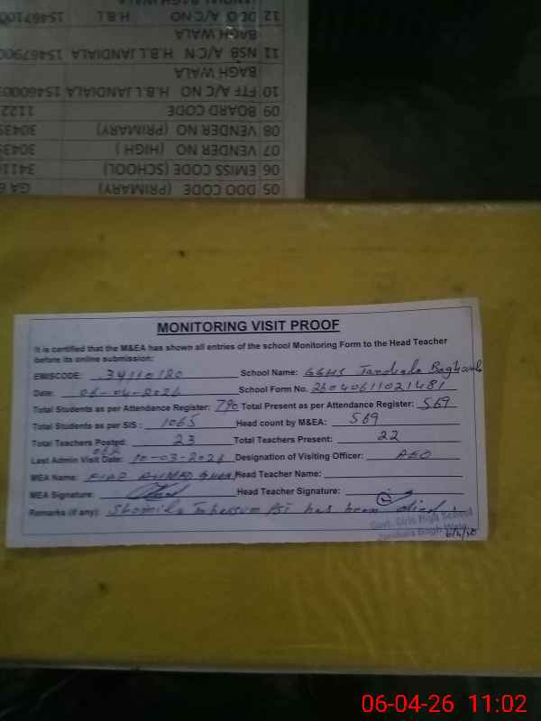 | EMIS Code: 34110120 | Name of School: GGHS JANDIALA BAGH WALA | |||