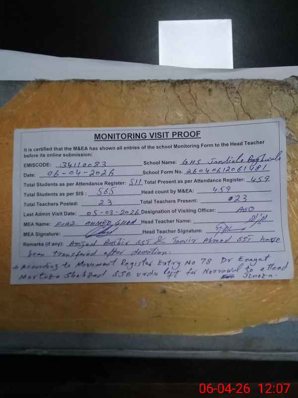 | EMIS Code: 34110083 | Name of School: GHS JANDIALA BAGH WALA | |||