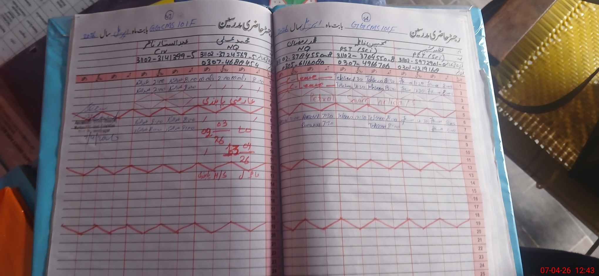 | Leave | Duty | Absent | Maternity | Medical | Ex- Pak |