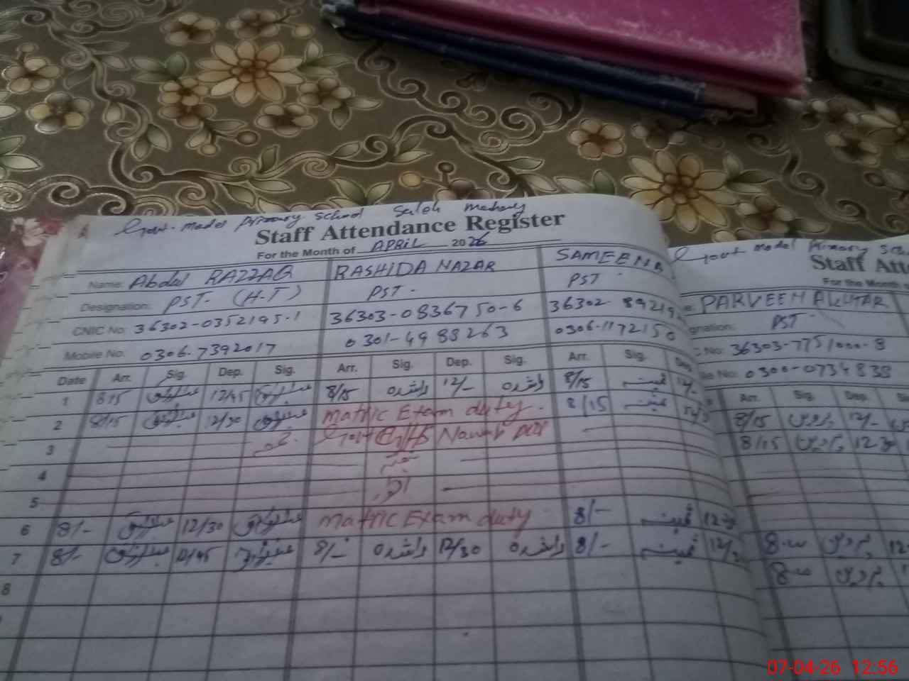 | Name: Ab**** Designation: (School Headmaster's/Headmistress's) PST/PTC/JV Phone/Cell Number: 03**** |