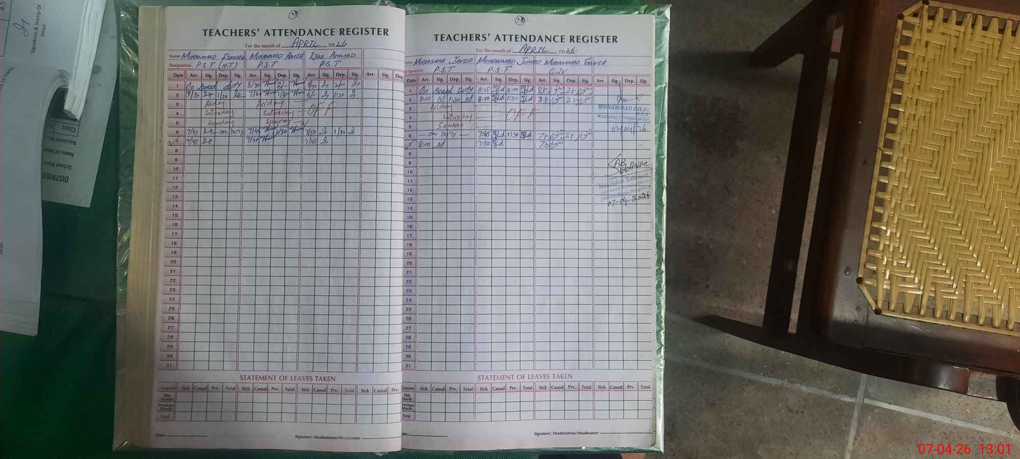 | Name: MU**** IS**** Designation: (School Headmaster's/Headmistress's) PST Phone/Cell Number: 03**** |