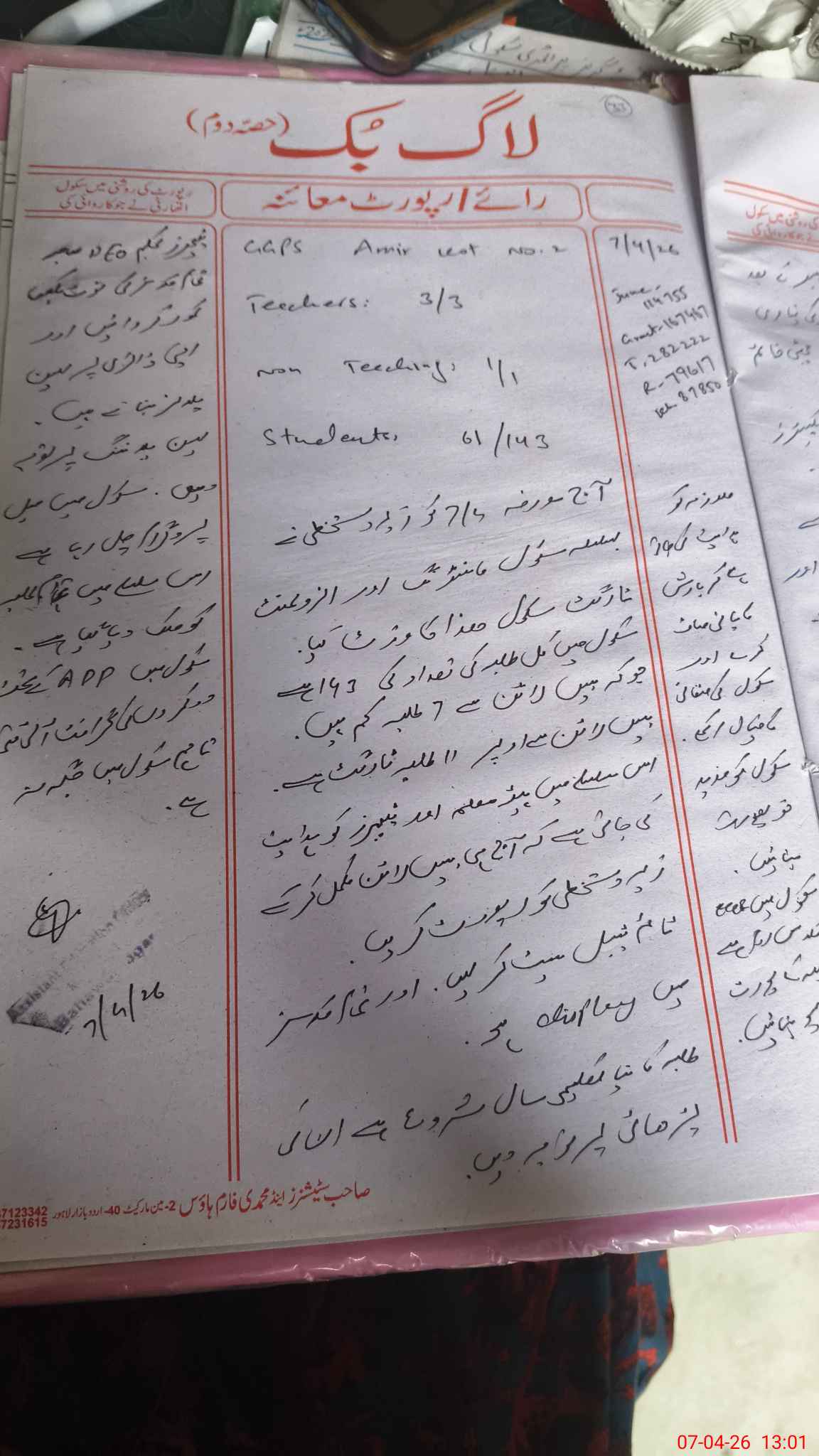 | Name: FA**** SA**** Designation: (School Headmaster's/Headmistress's) PST Phone/Cell Number: 03**** |
