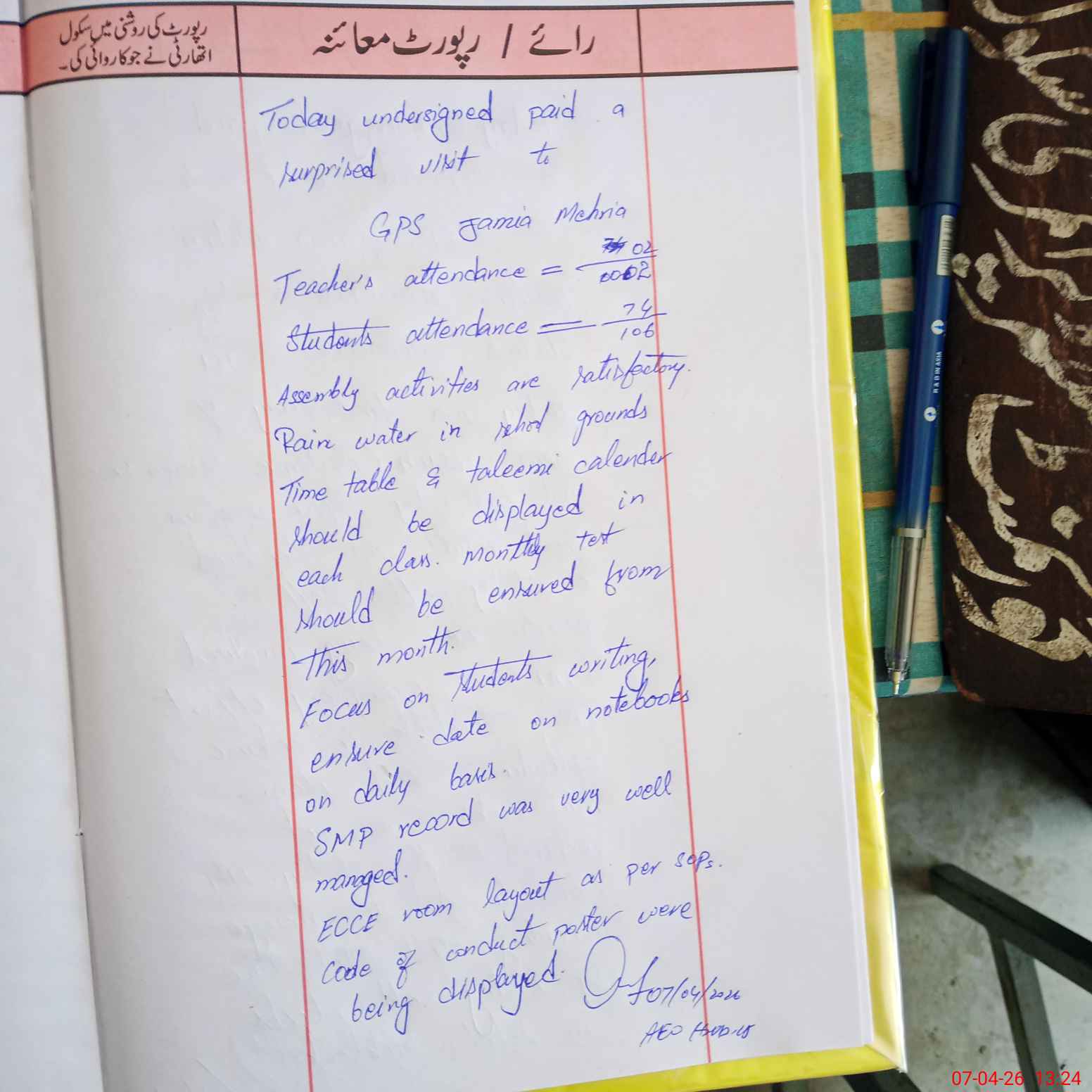 | EMIS Code: 31140513 | Name of School: GPS JAMIA MEHRIA | |||