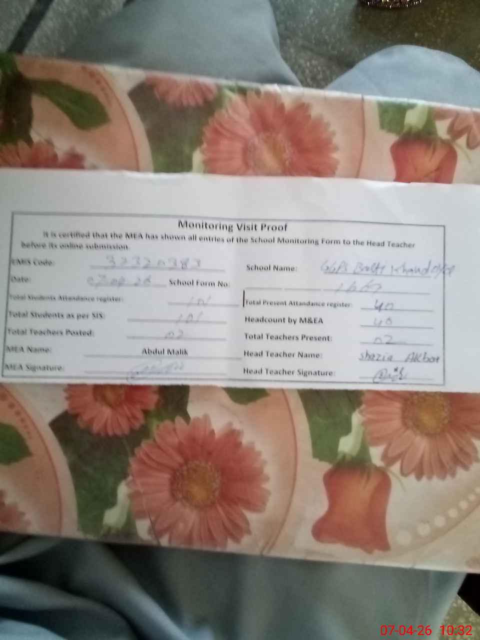 | Certified that this School was Inspected by the Undersigned MEA/DMO Today and the Information Stated Above is as Per Record. | |||||