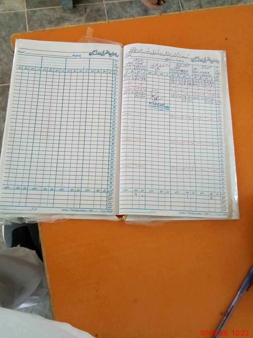 | CNIC | Full Name | Designation | R/C | Absence During Last Calender Month |