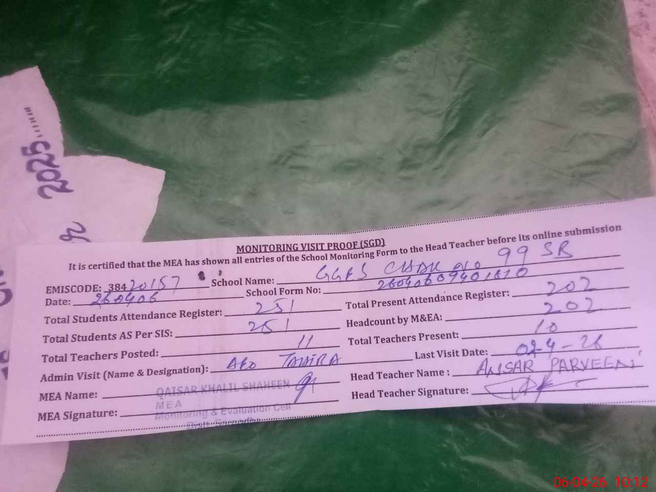 | EMIS Code: 38420157 | Name of School: GGES CHAK NO.99 SB | |||