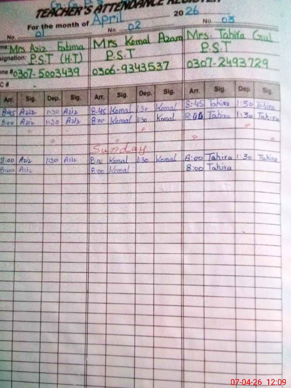 | Name: Az**** Fa**** Designation: (School Headmaster's/Headmistress's) PST Phone/Cell Number: 03**** |