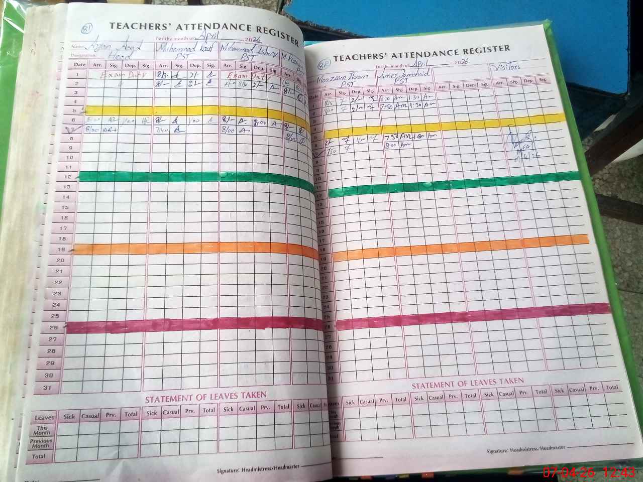 | Leave | Duty | Absent | Maternity | Medical | Ex- Pak |