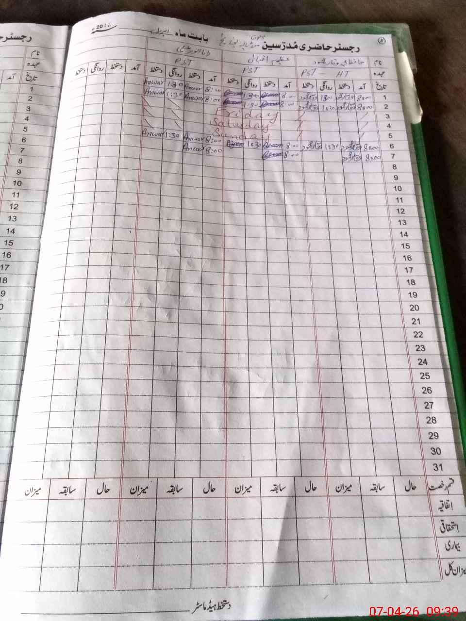 | CNIC | Full Name | Designation | R/C | Absence During Last Calender Month |
