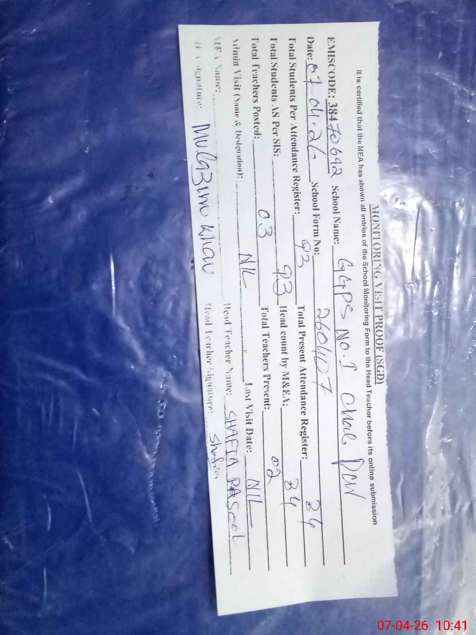 | EMIS Code: 38470692 | Name of School: GGPS NO.1 CHAL PUR | |||