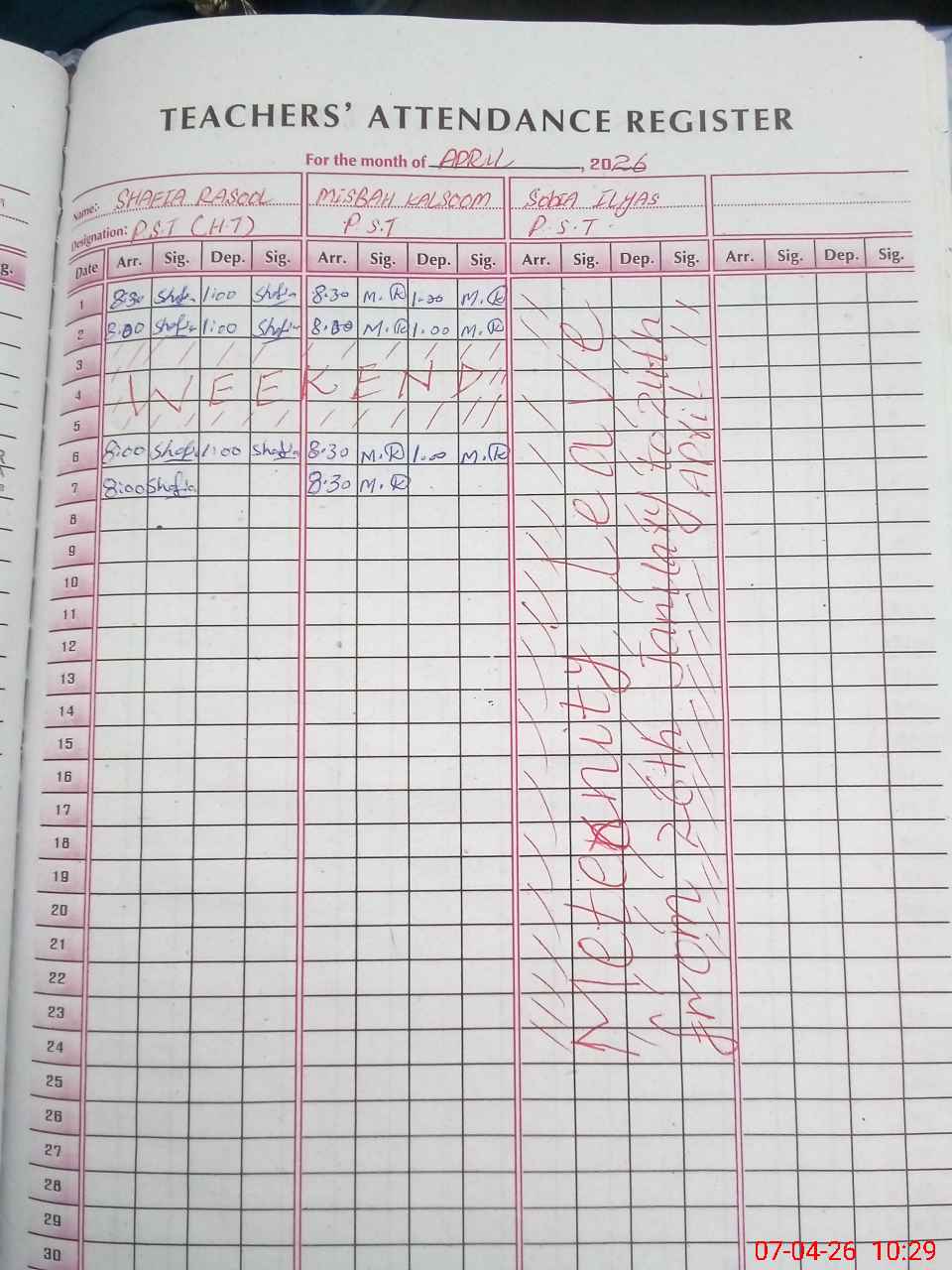 | 37**** | So**** Il**** | PST Science/Maths | Regular | 0 | 0 | 0 | 0 | 0 | 0 | 0 | 0 | 0 | Maternity |