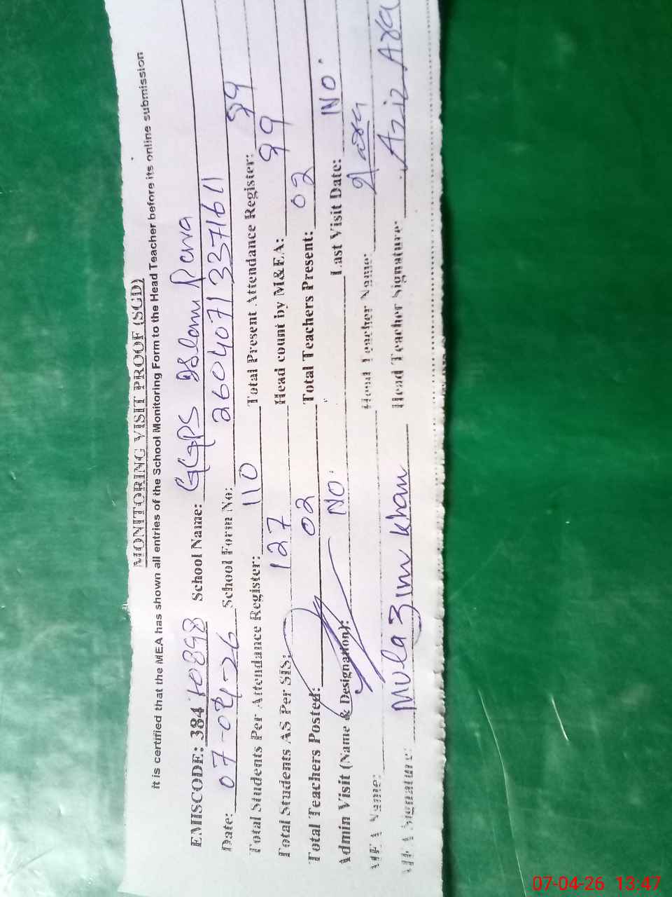 | EMIS Code: 38470898 | Name of School: GGPS ISLAM PURA | |||