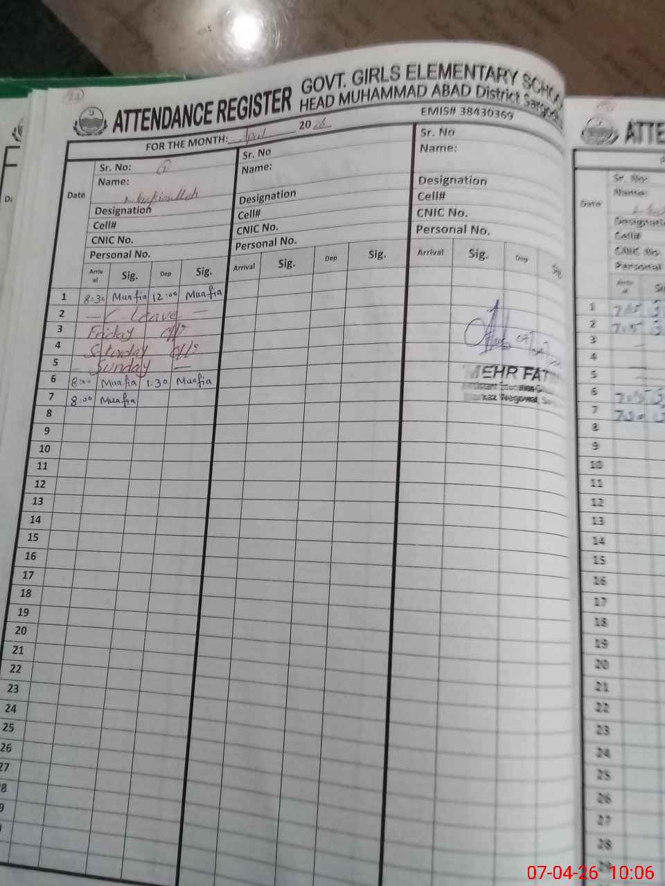 | Name: ME**** KA**** Designation: (School Headmaster's/Headmistress's) SSE (SCIENCE) Phone/Cell Number: 03**** |