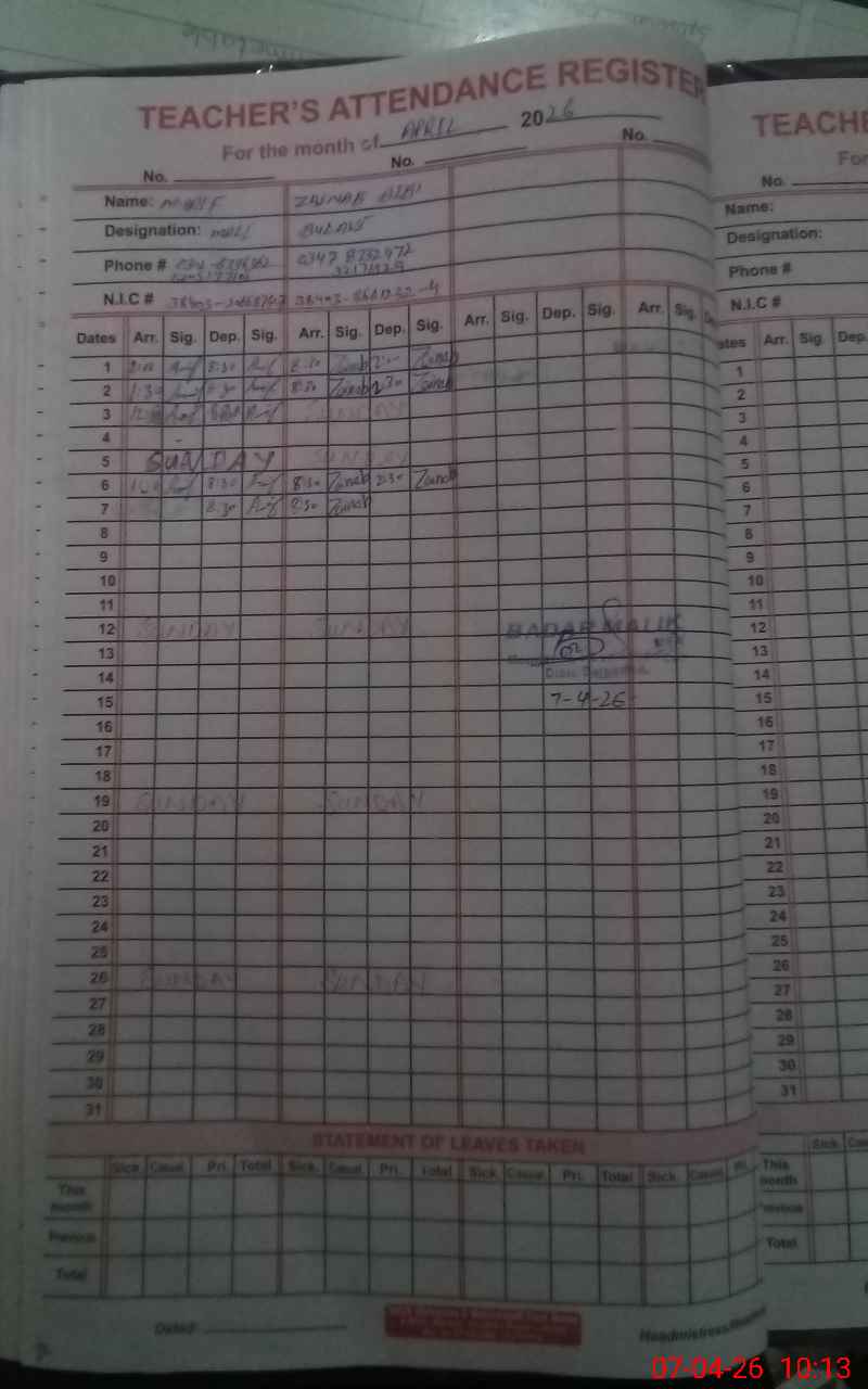| Name: Sh**** Pr**** Designation: (School Headmaster's/Headmistress's) SST Phone/Cell Number: 03**** |