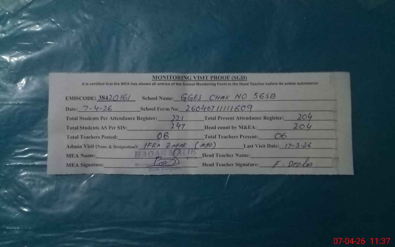 | EMIS Code: 38420161 | Name of School: GGES CHAK NO.56 SB | |||