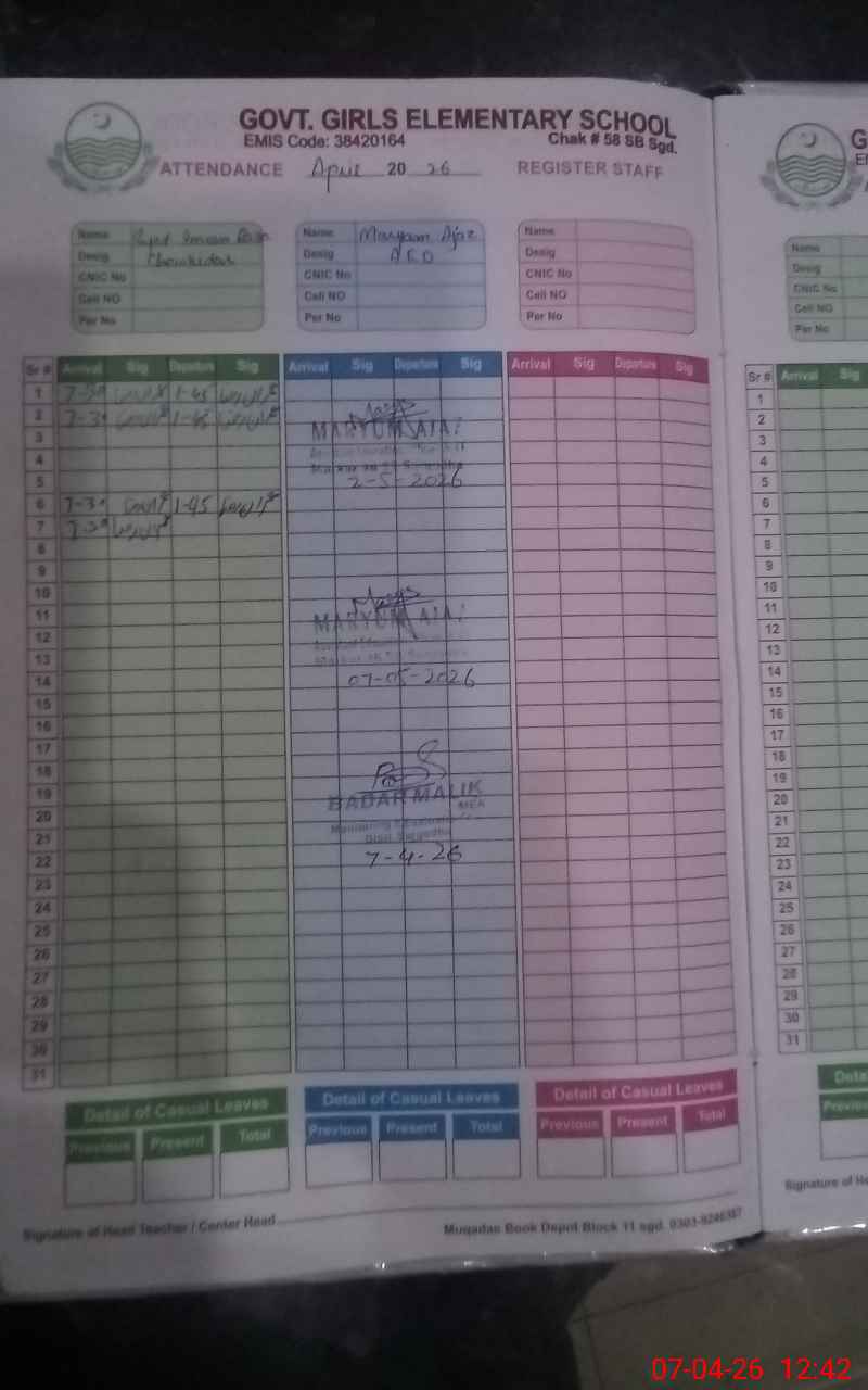 | EMIS Code: 38420164 | Name of School: GGES QASBAN WALA 58 SB | |||