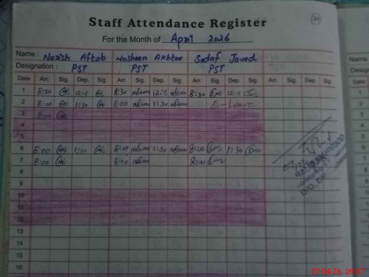 | CNIC | Full Name | Designation | R/C | Absence During Last Calender Month |