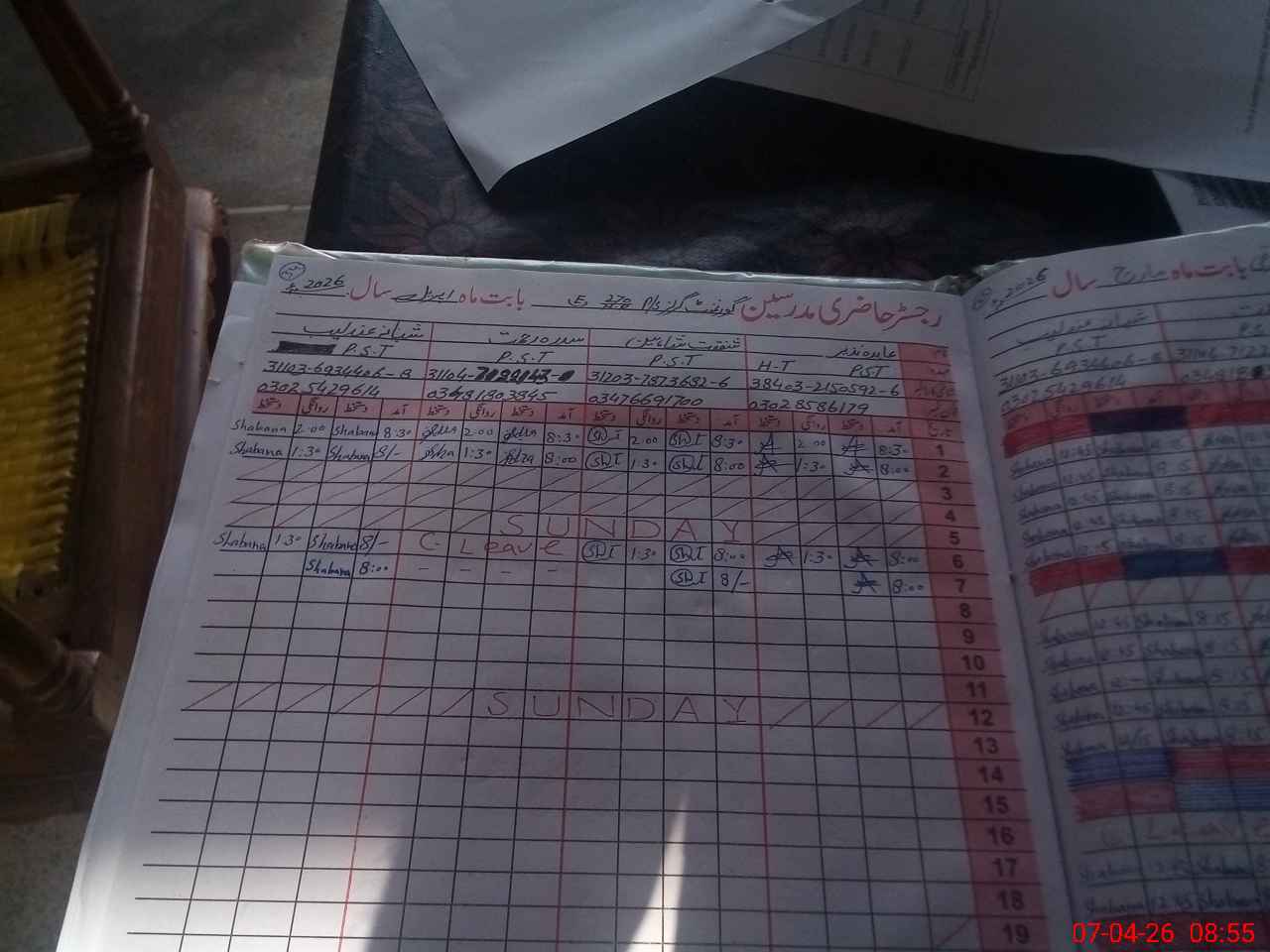 | Name: AB**** Na**** Designation: (School Headmaster's/Headmistress's) PST Phone/Cell Number: 03**** |