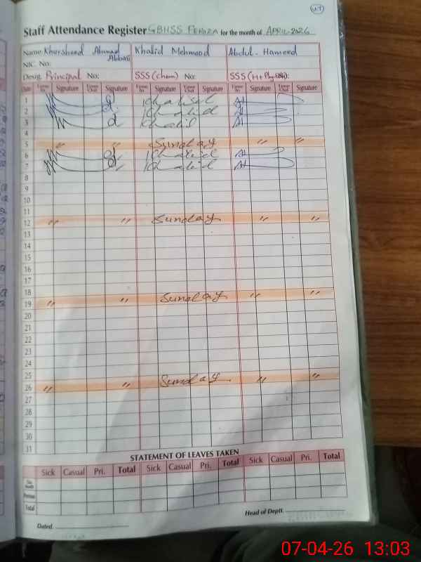 | EMIS Code: 31320001 | Name of School: GHSS FEROZAA | |||